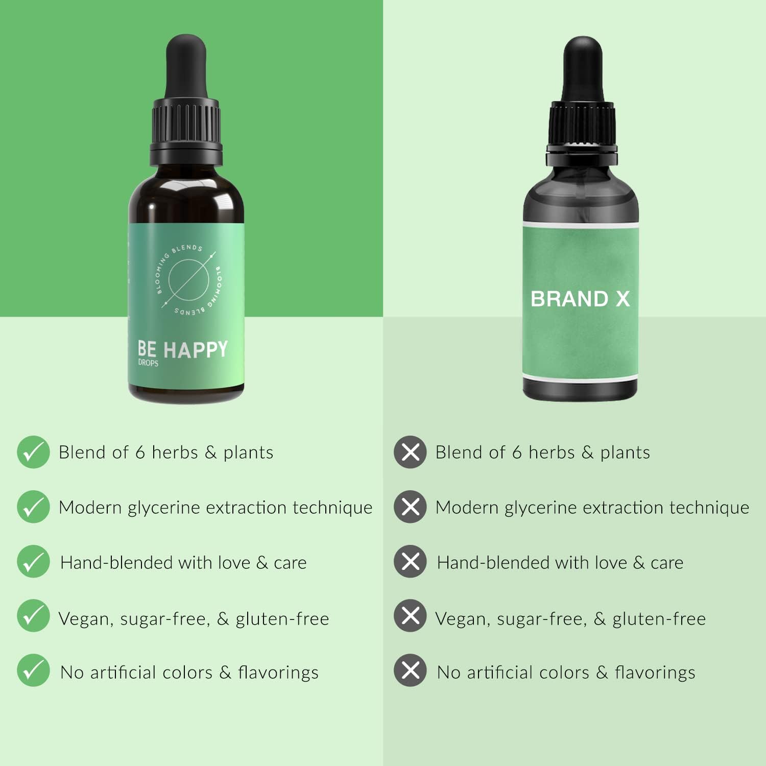 Each of our tinctures is a blend of six herbs, plants, & flowers extracts that date back to the ancient history of herbal medicine. We only use botanical ingredients, so our tinctures are chemical-free, alcohol-free, vegan, & gluten-free.