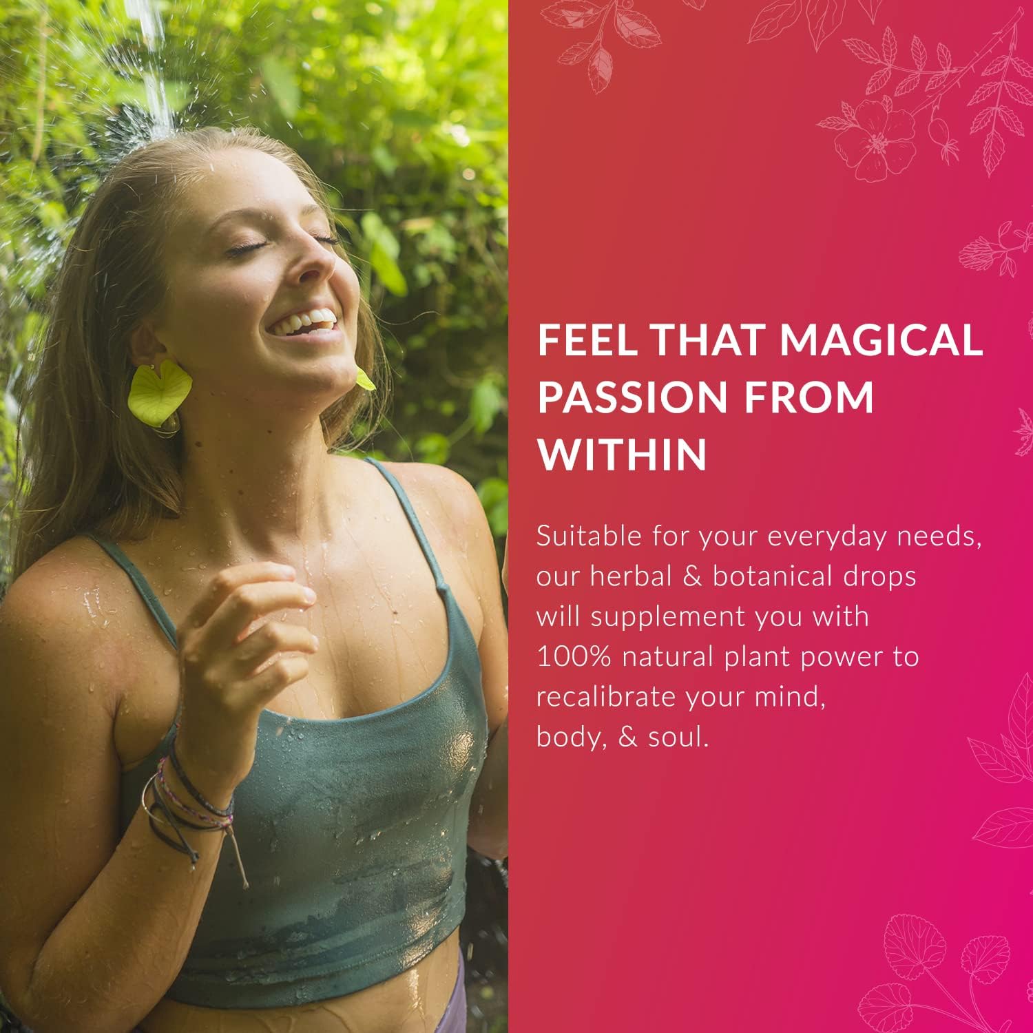 - Ignite Your Inner Fire: Rekindle your passion with this powerful organic ashwagandha tincture that contains rose petal extract to fuel up your heart for love and desire, while the Damian leaf extract increases your confidence to strike up a conversation.