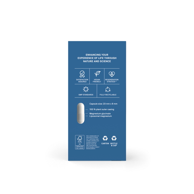 Key Benefits ✔ Highly Bioavailable Magnesium Glycinate A gentle, easily absorbed form of magnesium that supports effective daily replenishment. ✔ Liposomal Magnesium for Enhanced Uptake Liposomal technology promotes efficient transport and utilisation at the cellular level. ✔ Dual-Release Delivery System Designed to offer both quick absorption and steady, sustained nutrient support throughout the day. ✔ Supports Energy, Muscle Function & Nervous System Balance Magnesium contributes to normal muscle function, energy production, and psychological wellbeing. ✔ Gentle on the Stomach Magnesium glycinate is known for its digestive comfort, making it suitable even for sensitive individuals. ✔ Clean, Vegan & High-Quality Formula Free from unnecessary fillers, artificial additives, or animal-derived ingredients—100% vegan friendly.