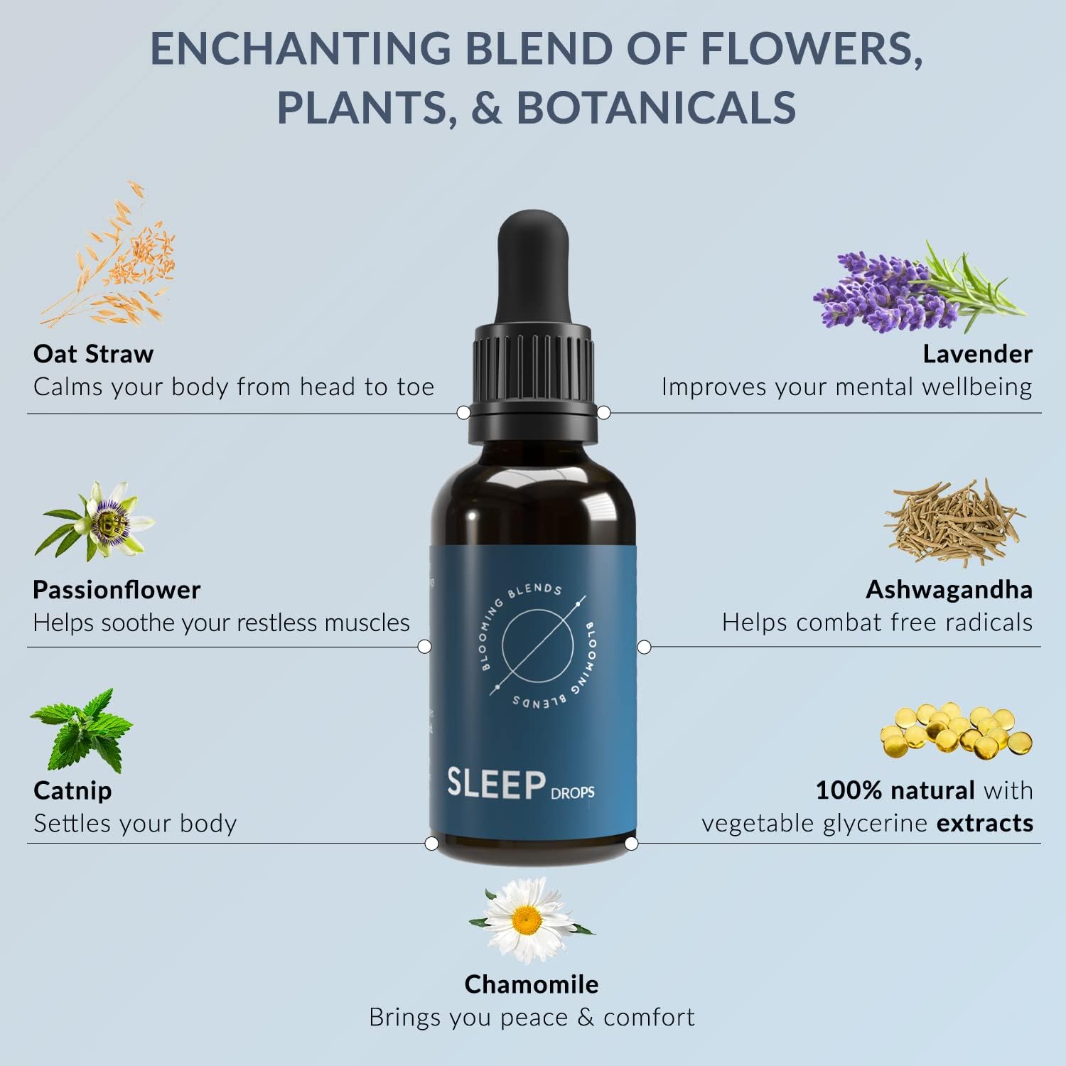 - The Natural Way to Recharge Better: Our sleeping aid tincture contains only earth-given botanicals such as Oat Straw, Ashwagandha, Linden Flower, Chamomile, and Lavender. Let this Nighttime Tincture revive your nighttime patterns naturally.