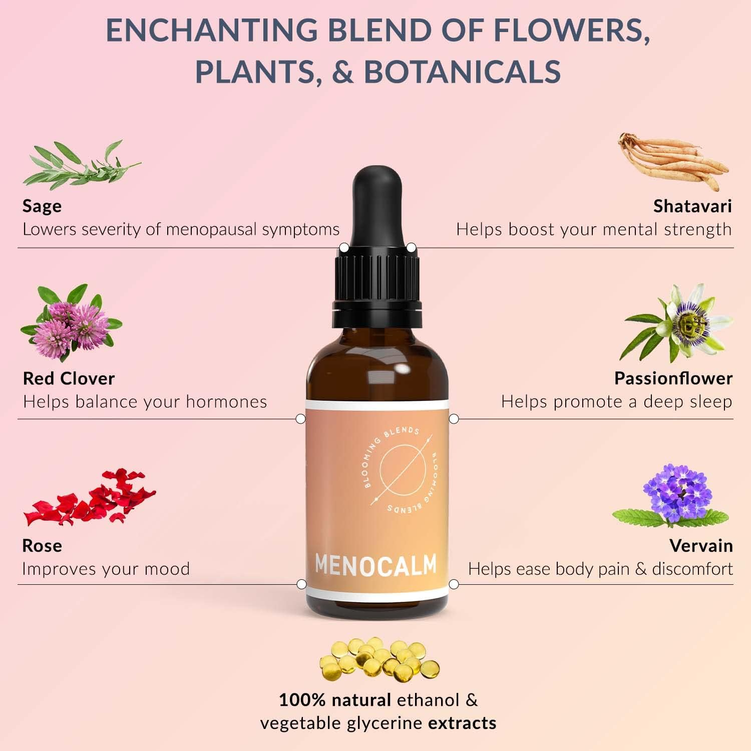 Blooming Blends MenoCalm Blend for Menopause Relief 30ml Powerful Tincture Blend containing Rose Petal & Red Clover